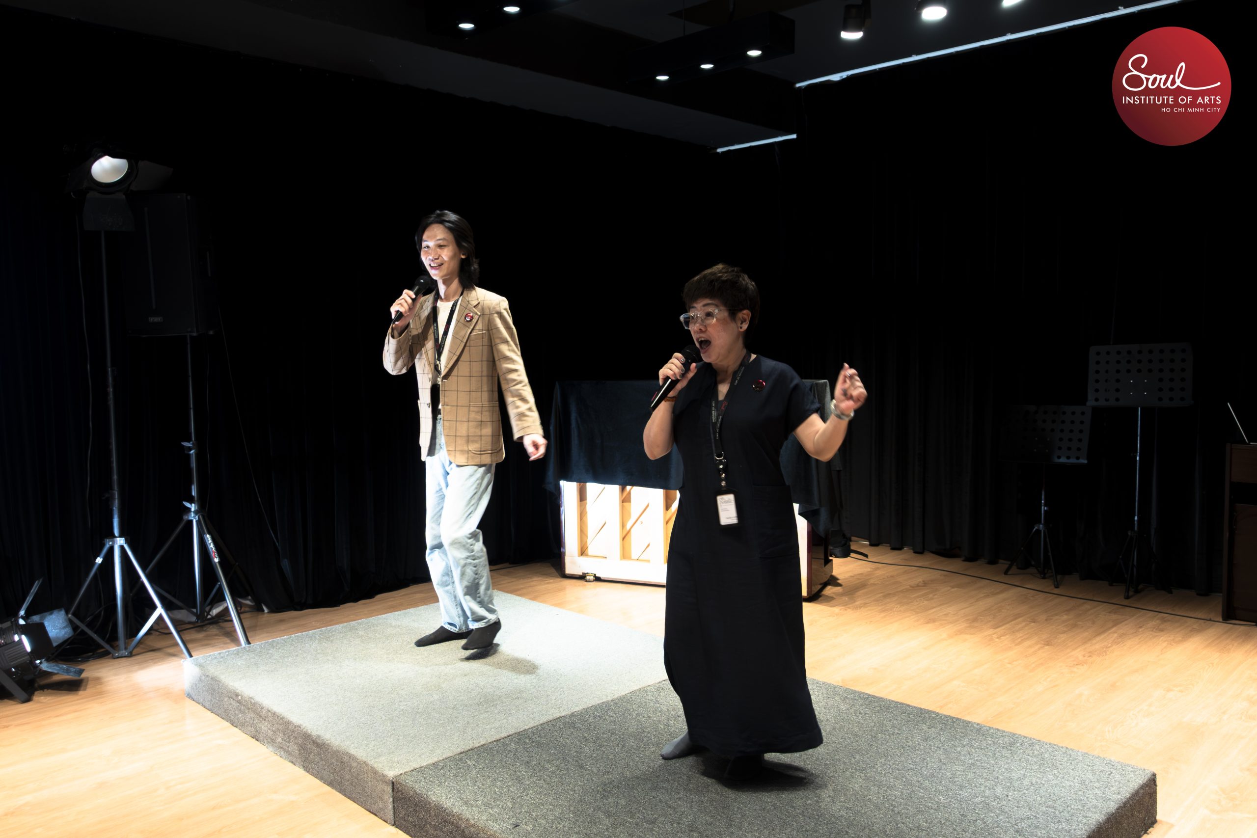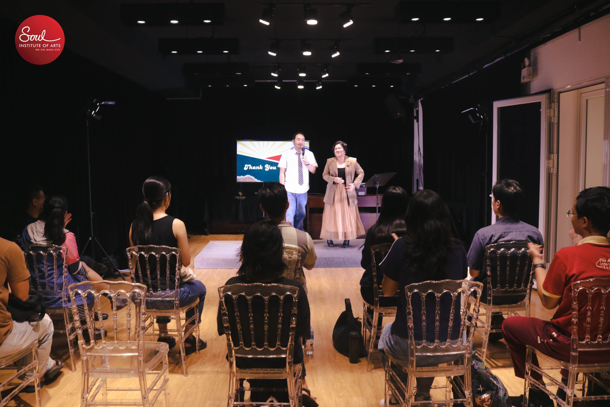 Thầy Anh Tuấn và cô Bích Ngọc đã mang đến cho hoạt động "Lessons in Music Performance Skills" những chia sẻ vô cùng hữu ích, giúp các bạn học viên chủ động và sẵn sàng cho những màn trình diễn trọn vẹn và tỏa sáng ở mọi không gian sân khấu.