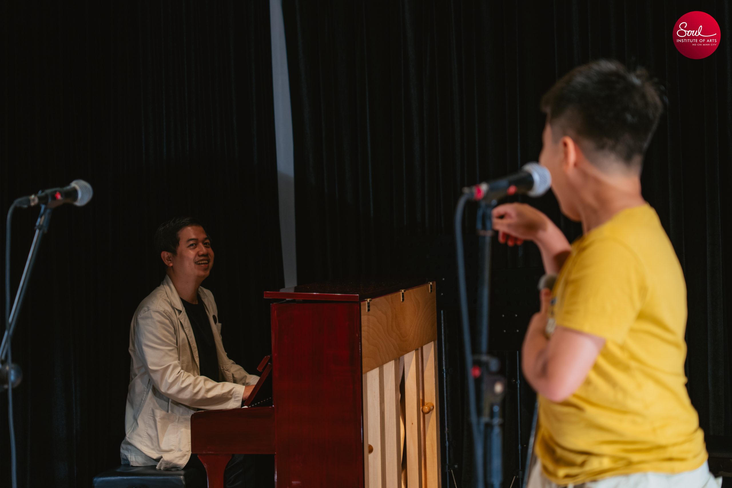 Hoạt động "Lessons in Music Performance Skills" cùng thầy Đăng Toàn và thầy Tuấn Anh đã giúp các bạn học viên xây dựng ý thức quan sát và kỹ năng phản ứng nhanh trước những tình huống không mong đợi, từ đó có thể biến mọi tình huống trở thành một phần của màn trình diễn với phong thái tự tin và bản lĩnh nhất.