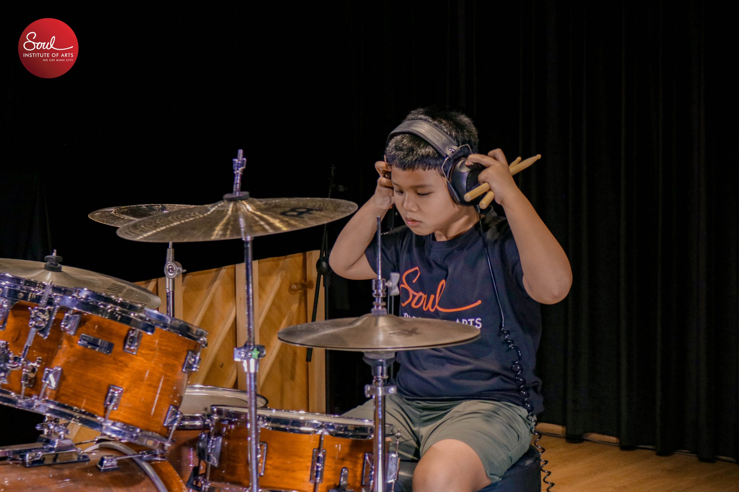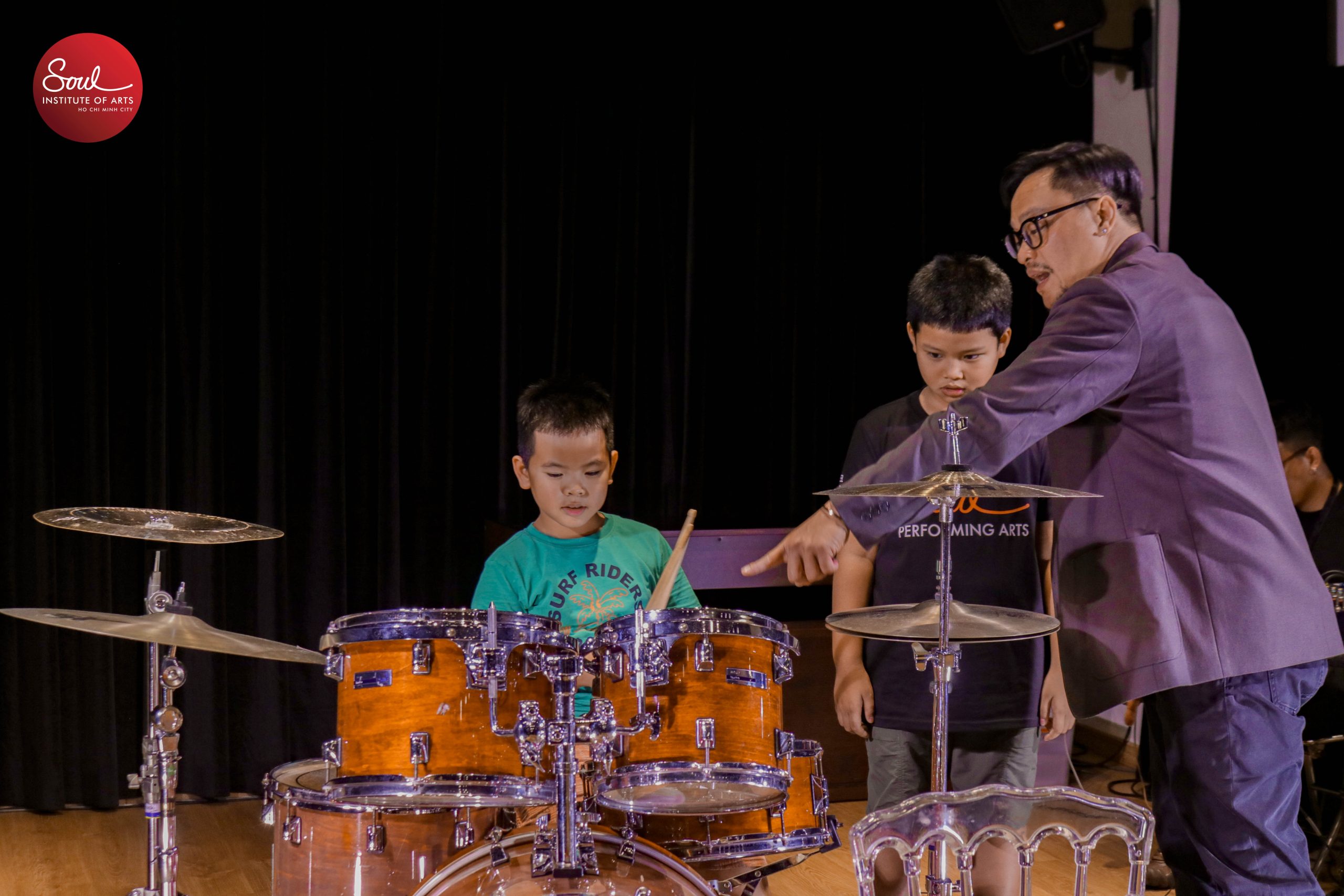 Buổi học tập và thực hành trình diễn dành riêng cho các học viên bộ môn Drums tại "Lessons in Music Performance Skills" đã giúp các bạn rèn luyện những kỹ năng thực tế nhất: từ tác phong, trang phục, cách giới thiệu bài, đến khả năng giữ nhịp dưới áp lực và giao tiếp bằng mắt với các thành viên trong ban nhạc.